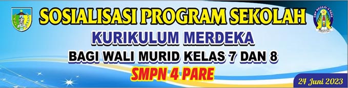 Pare, 23 Juni 2023- SMP Negeri 4 Pare telah menggelar sosialisasi Kurikulum Merdeka bagi wali murid kelas 7 dan 8. Kegiatan ini merupakan langkah penting dalam menjalin kolaborasi antara pihak sekolah dan orang tua, demi menciptakan lingkungan belajar yang optimal bagi para siswa. Sosialisasi ini bertujuan untuk: Memberikan pemahaman yang komprehensif kepada wali murid mengenai konsep dan implementasi Kurikulum Merdeka, Menjelaskan perbedaan antara Kurikulum Merdeka dengan kurikulum sebelumnya, Menginformasikan peran serta orang tua dalam mendukung keberhasilan Kurikulum Merdeka.